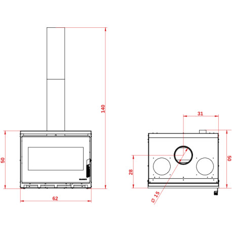 Focolare da inserimento dalle alte prestazioni (il livello di prestazione ambientale è 5 stelle). L'ingombro contenuto li rende ideali sia per ripristinare vecchi caminetti aperti che per la realizzazione di un caminetto nuovo. Possibilità sia di ventilazione frontale che di canalizzazione con i kit dedicati.